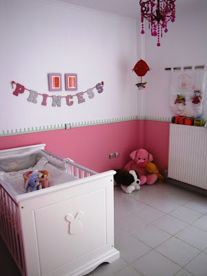 Ξετρελάθηκα όταν είδα τις φωτογραφίες του δωματίου της μικρούλας Κυβέλης! Εντυπωσιάστηκα κυρίως από τον τοίχο που αν και απλός, είναι εξαιρετικά ιδιαίτερος! Πέρασα από… ανάκριση τη μαμά Όλγα, για να μάθω τι ακριβώς είναι αυτές οι «κορώνες» στο σημείο της ένωσης ροζ-άσπρου.