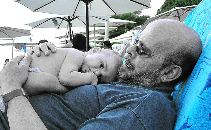 | Και μετά χαλάρωση με τον μπαμπά στην ξαπλώστρα! |