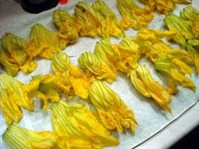 Λίγο πριν σερβίρουμε βγάζουμε από το ψυγείο το κουρκούτι και τα λουλούδια έτοιμα και τα τηγανίζουμε σε μέτρια- δυνατή φωτιά. Όταν τα γυρίσουμε από την άλλη πλευρά πατάμε με το πιρούνι το κεφάλι τους να γίνει πιο πλακέ και να ψηθεί γρηγορότερα.